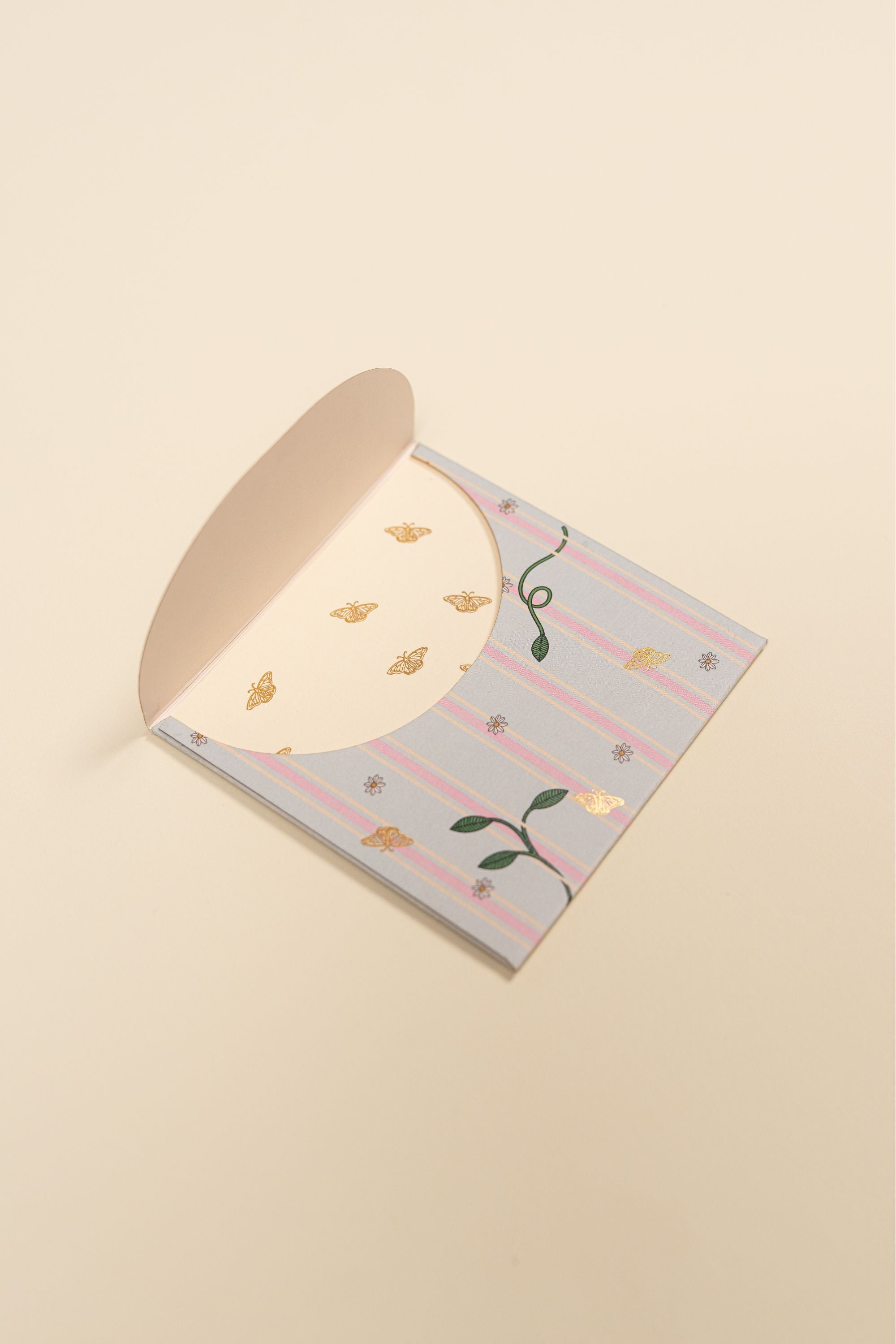 This lovely Butterfly Card comes with a matching envelope and is perfect for kids’ special messages. The envelope is decorated with delicate gold foiling, adding a touch of sparkle and magic. Measuring 9 x 9 cm, it’s just the right size for little notes, drawings, or kind words. Fun, elegant, and charming, it’s ideal for gifting, celebrations, or making someone smile.